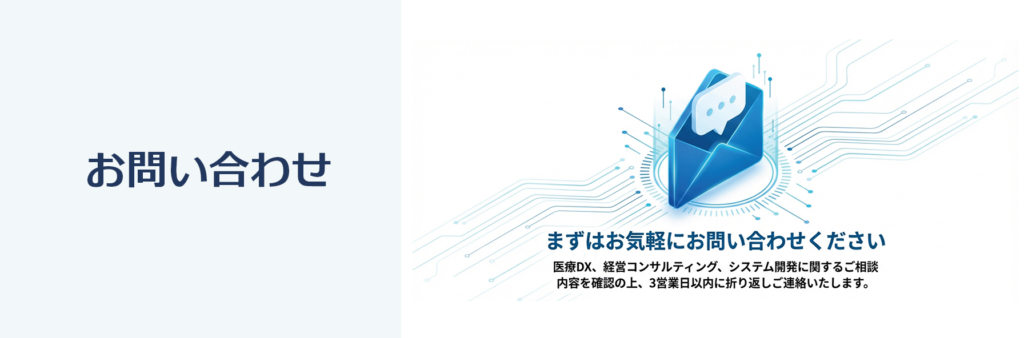 合同会社ショアロへのご相談・ご依頼は、下記フォームよりお気軽にご連絡ください。医療DX、経営コンサルティング、システム開発に関するお問い合わせをお待ちしております。内容を確認の上、3営業日以内に折り返しご連絡いたします。